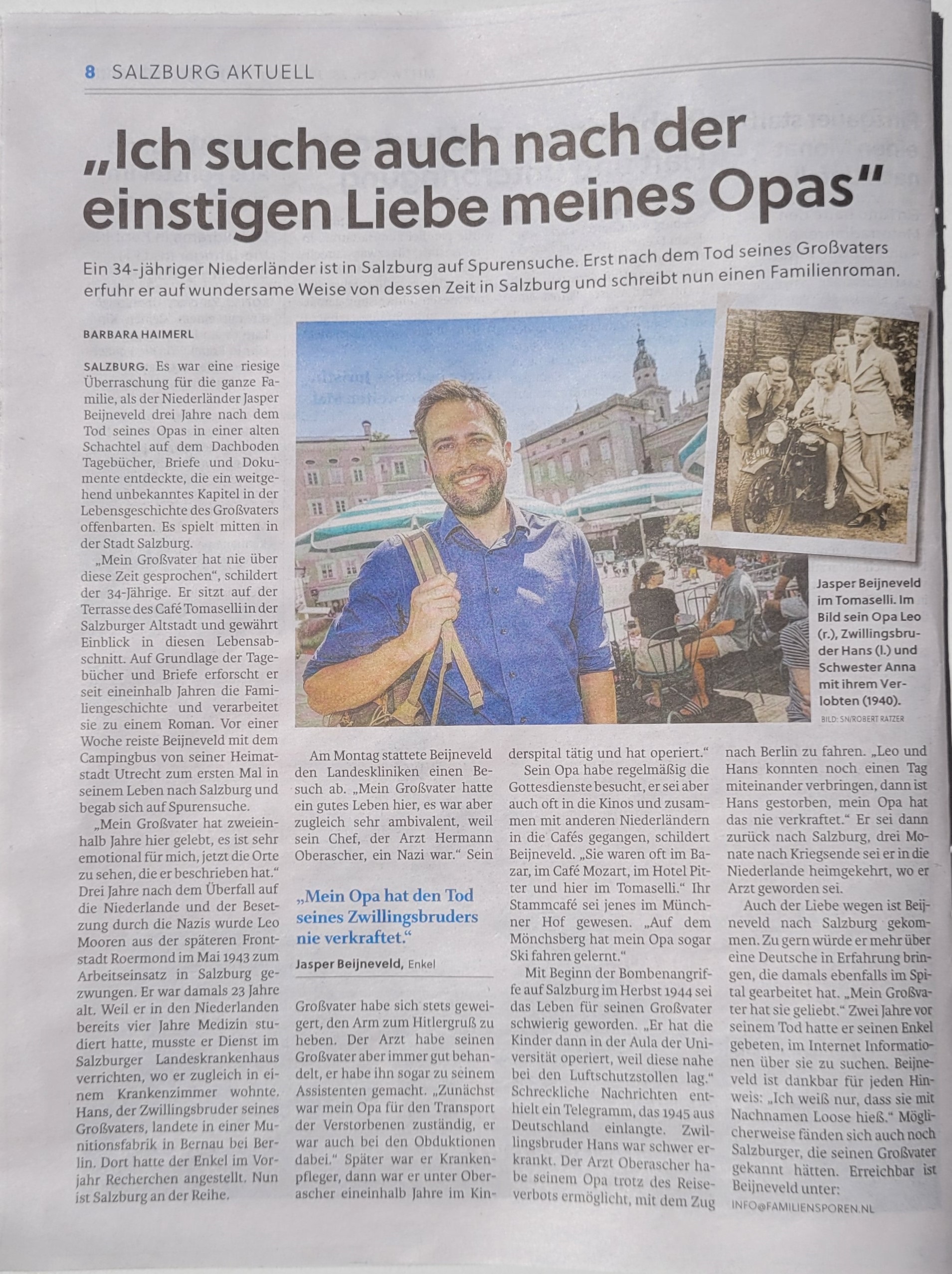 Deze zomer reisde ik naar Salzburg op zoek naar sporen van mijn opa uit de Tweede Wereldoorlog. Hulp kwam uit onverwachte hoek met dit mooie artikel in de Salzburger Nachrichten!